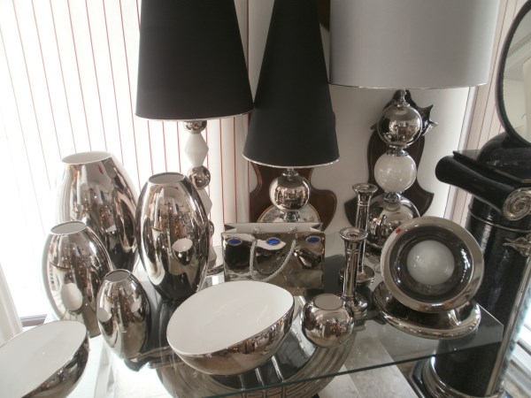 RIG0157PL Lampada Mary c/base tutto platino h. cm. 31 Ø cm.28