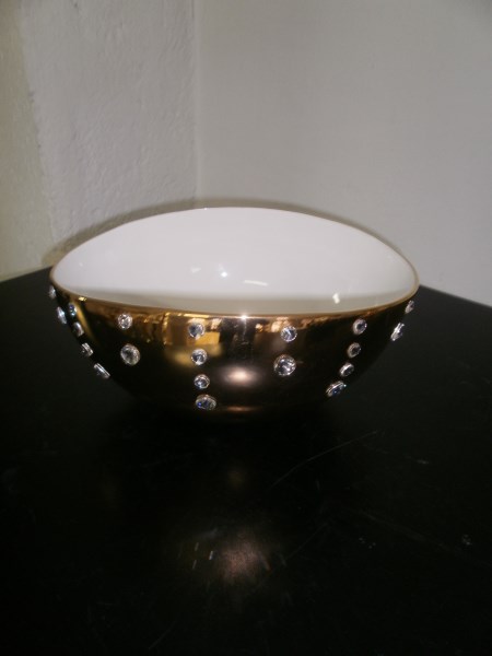 RIG0110 Ciotola ovale 1°.mis. tutto oro e strass cm. 31 x 24 cm.