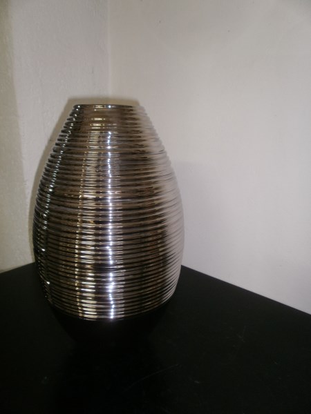 RIG0118N Vaso BOMBATO RIGATO nero e platino h. cm. 46 Ø cm. 32