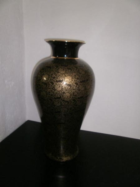 RIG0106 Vaso BOMBAY nero e dec.pizzo oro h. cm.59 Ø 36 cm.